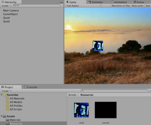 In a Unity scene a C# script re-implemented the sprite plotting function, this time actually updating a simple 2D Sprite in the Scene. A further C# script served to bootstrap everything and call the apps Update() function each frame.